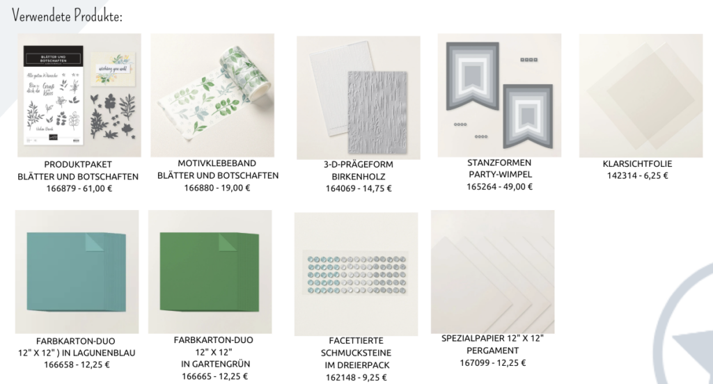 Hier habe ich noch die Produkte mit der ich die Karte gebastelt habe.