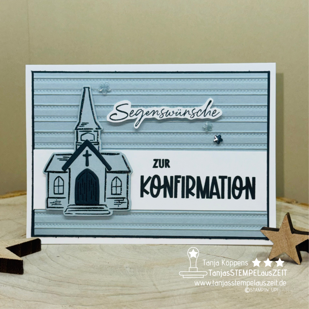 Den großen Schriftzug zur Konfirmation ist aus dem Stempelset GRÜNDE ZUM FEIERN.